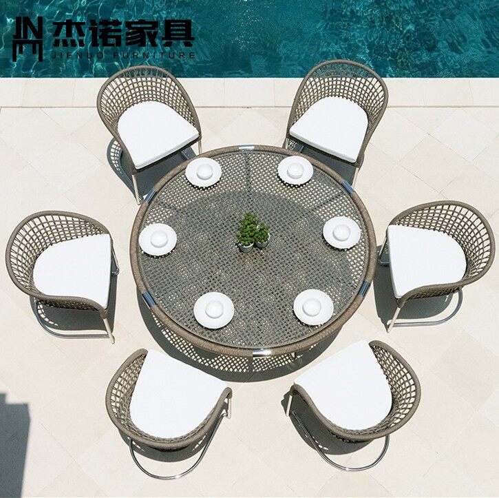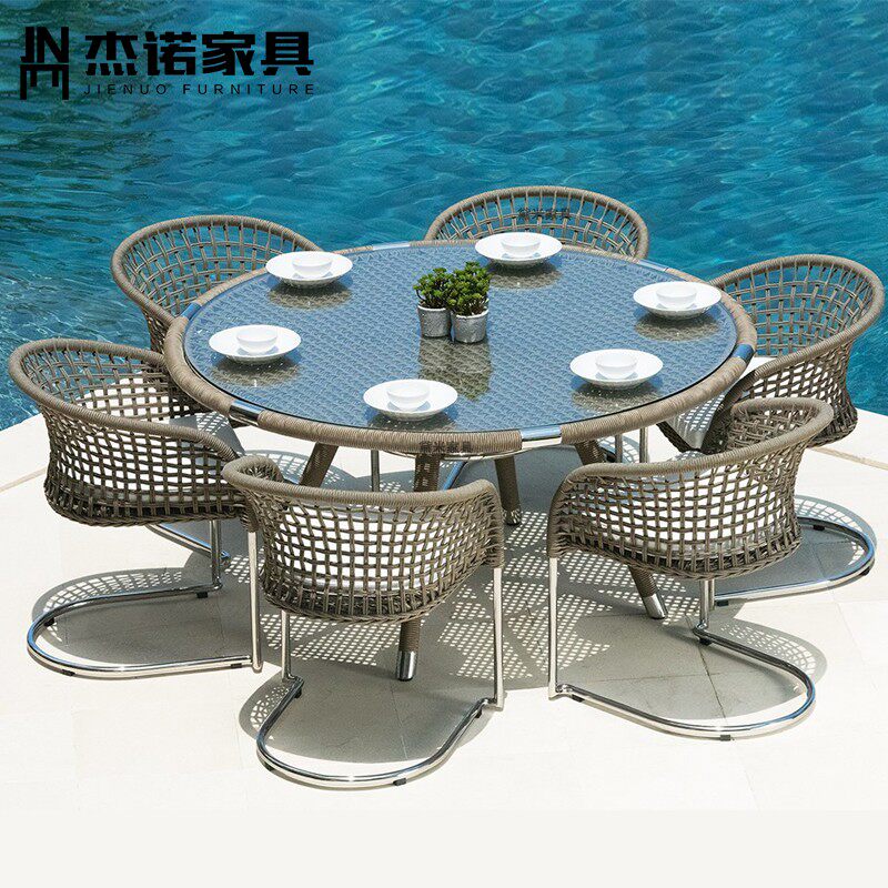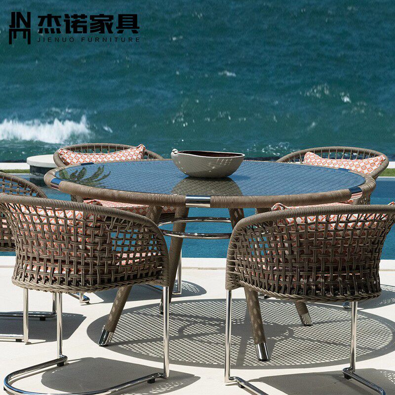 Outdoor round dining table and chair combination rattan chair three-piece villa courtyard leisure outdoor chair garden back chair combination