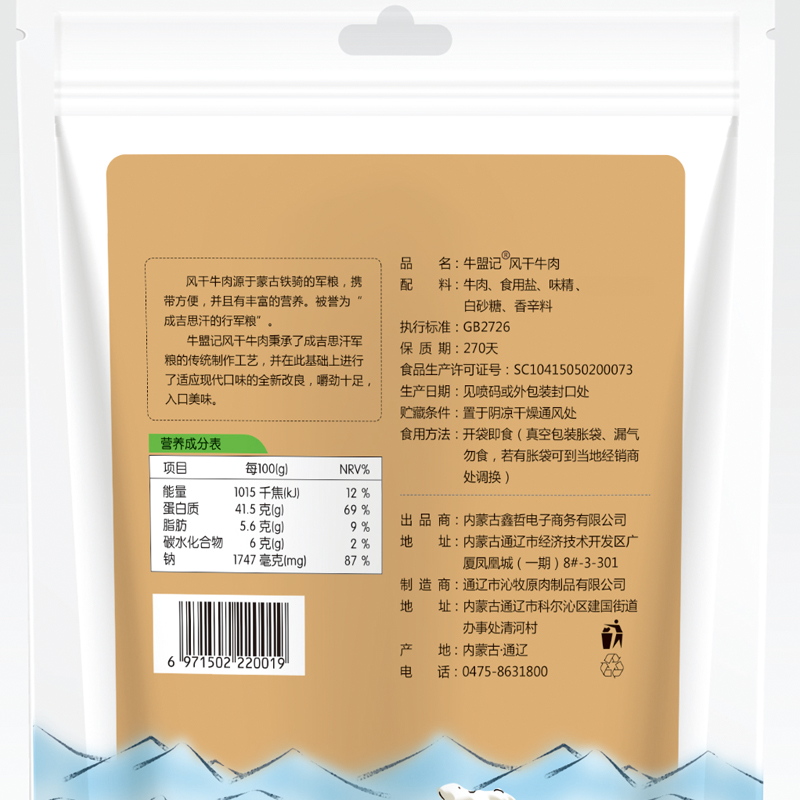 Niumengji Authentic Tongliao specialty Inner Mongolia air-dried beef jerky hand-torn snacks bagged flagship store official