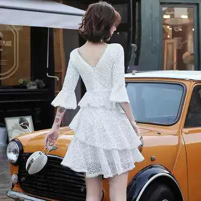 High-end evening dress dress dress female banquet noble white fairy celebrity birthday temperament dress usually wear short style