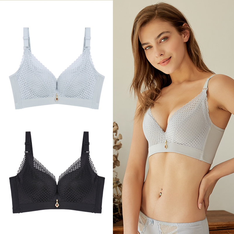 HT Tingmei breathable thin non-rimmed underwear female anti-sagging lace mesh sexy bra gathered women's bra