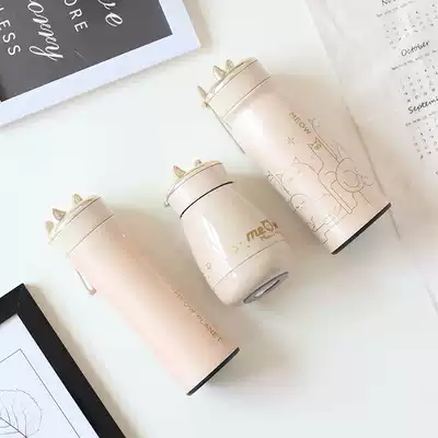 Cute super cute cat thermos cup Japanese ins wind girl portable water cup Pink girl heart creative cute cup