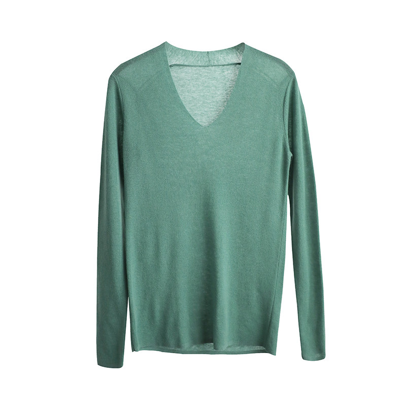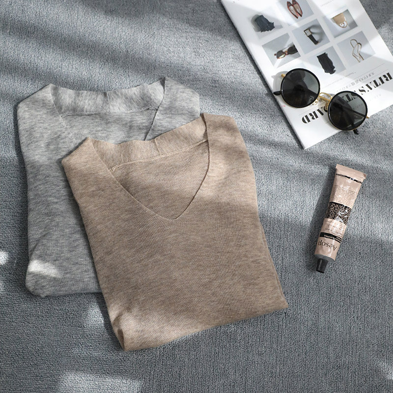 LunaMade Word of Mouth Fine Needle Nude Skin-Friendly 100 Count Ultra-thin Lightweight Machine Washable V-Neck Wool Bottoming Shirt