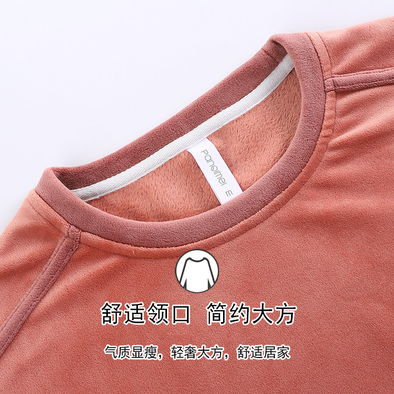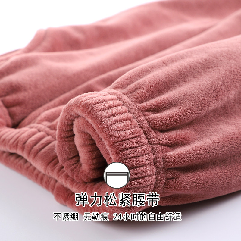 Clear Barn Winter Coral Suede Pyjamas Woman Spring Fall flange Flannel Thickened Sleeve Head Winter Island Suede Home Suit-Taobao
