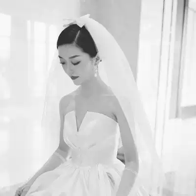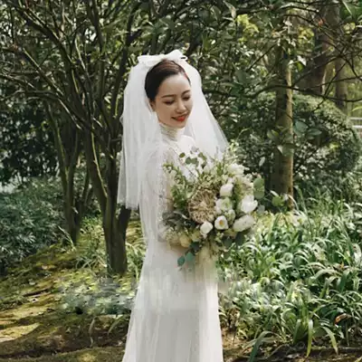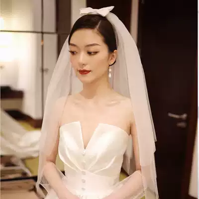 Bride bow veil short super fairy Korean style photo props new forest collar wedding yarn headdress double layer