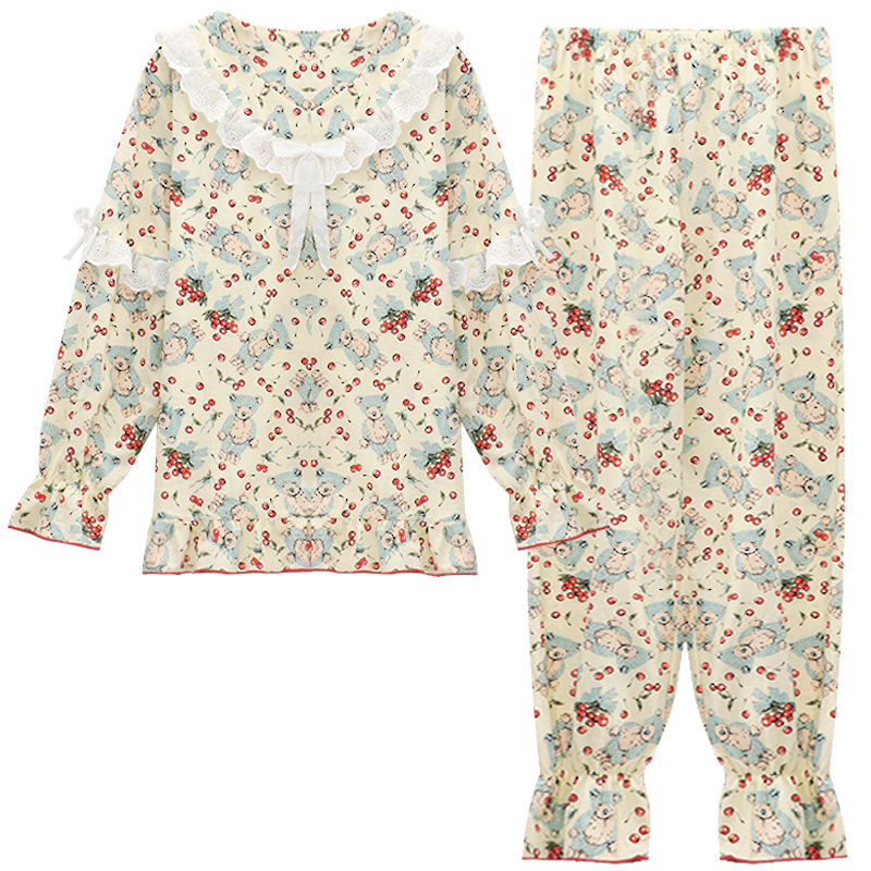 Princess style pajamas women's spring and autumn long-sleeved cotton suit students autumn and winter sweet Korean thin section autumn and summer home clothes