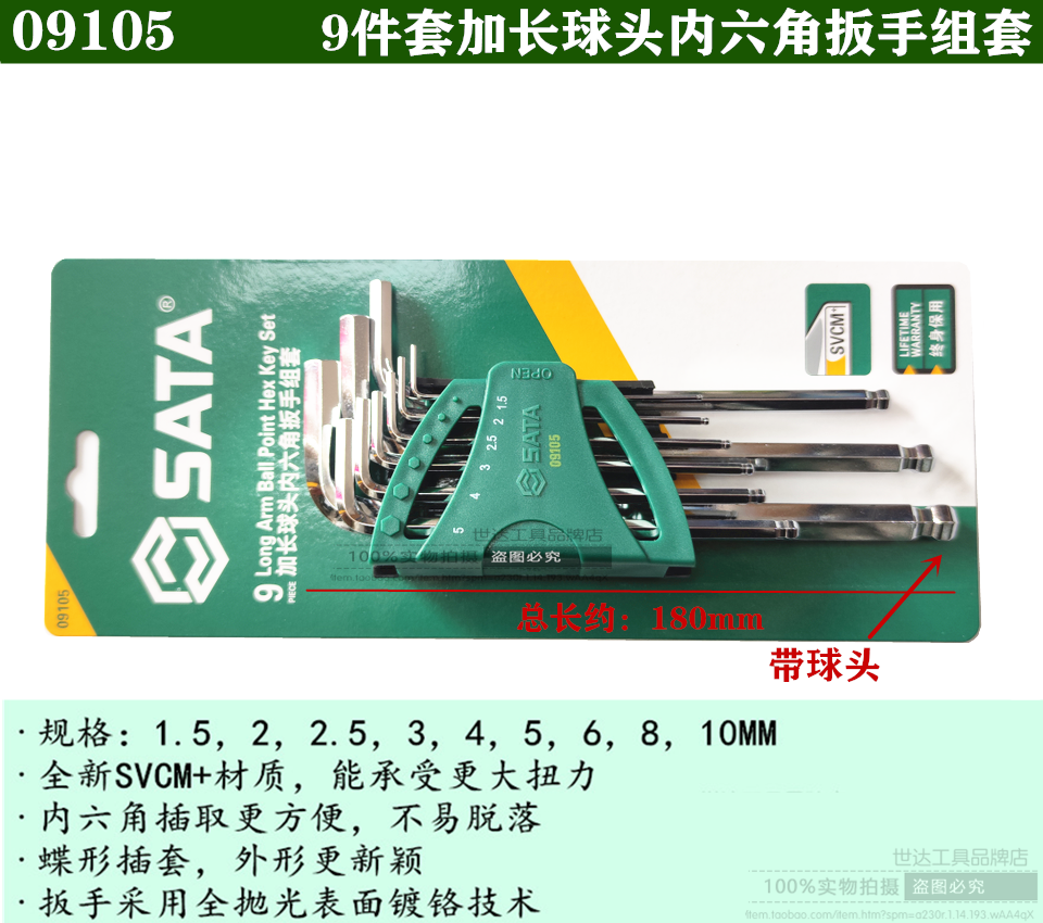 SATA Shida Inner Hexagon Wrench Suit Male-made Long lengthened ball head flat head 09101 09105