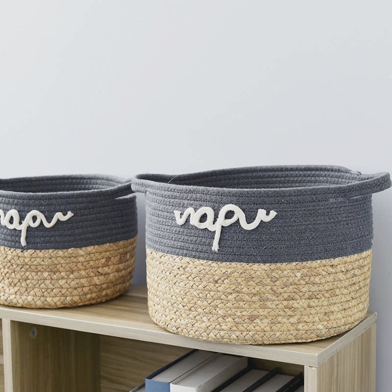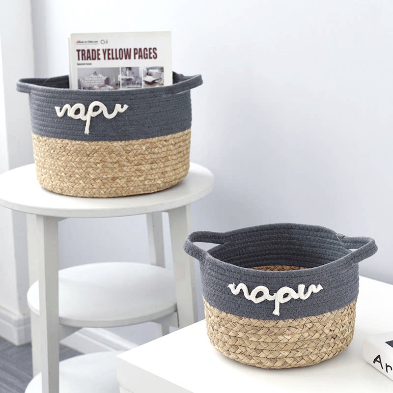 A Pint Foreign Trade Refined Straw Choreography Home Containing Bucket Containing Basket Tabletop containing basket Miscellaneous Finishing basket Rattan Woven Basket