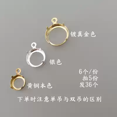 6 12mm brass color-preserving four-claw round ring face hollow bottom holder 391 far fragrance DIY gold pendant empty holder accessories