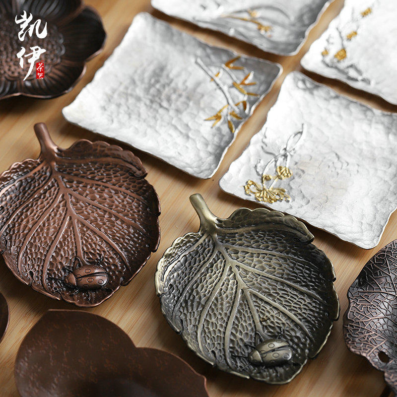 Ladybug Leaf Cup holder-Bronze Ladybug Leaf Cup Holder-Bronze Bamboo Rhyme cup holder-Tin Orchid cup holder-Tin Chrysanthemum cup holder-Tin Plum Cup Holder-Tin Zen Lotus Cup Holder-Ancient