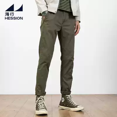 Hai Xing khaki casual pants men's spring and autumn stretch cotton pants retro old slim gauze trousers