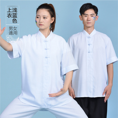 Breathable thin section tai Chi suit top summer men's and women's Tai Chi practice clothing short-sleeved martial arts T-shirt Chinese style