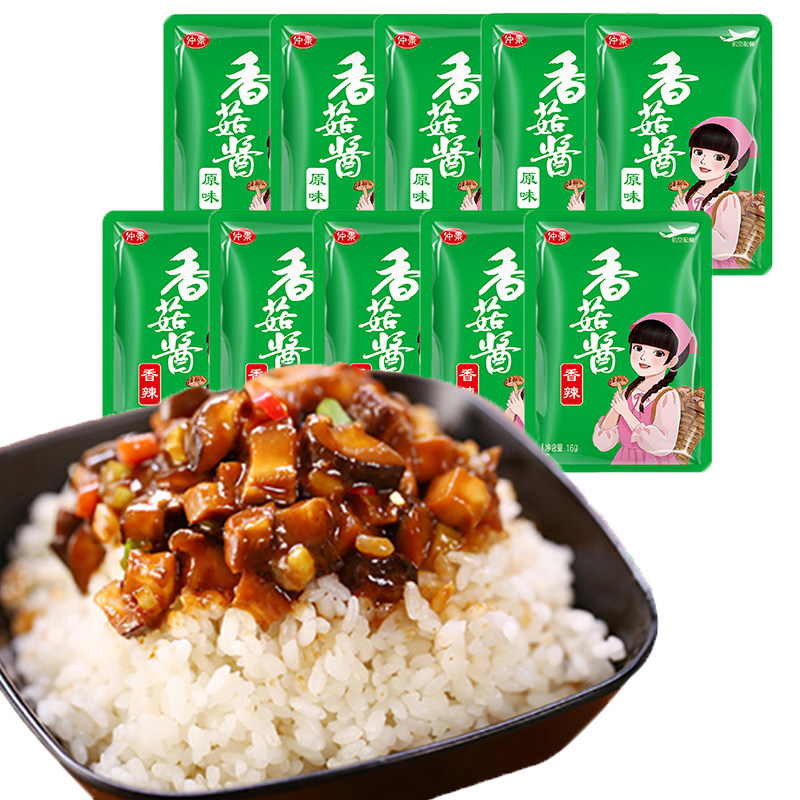 Zhongjing Shiitake mushroom sauce original flavor 16g*50 bags of meals with porridge sauce small bags of bibimbap noodles Mushroom sauce with sauce