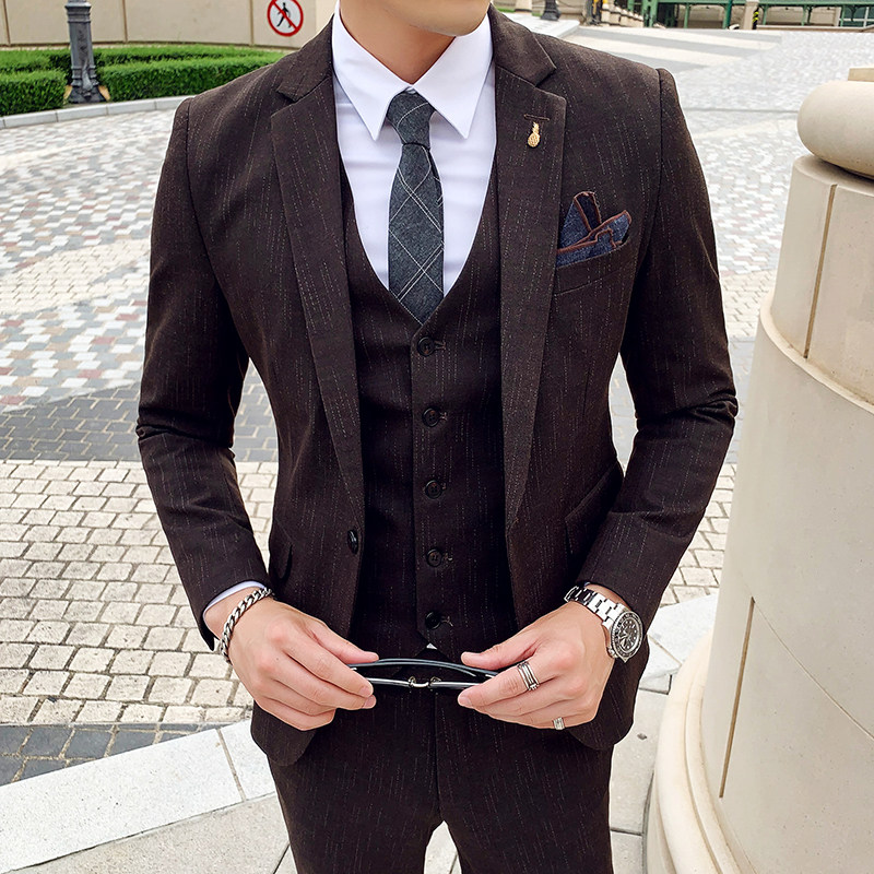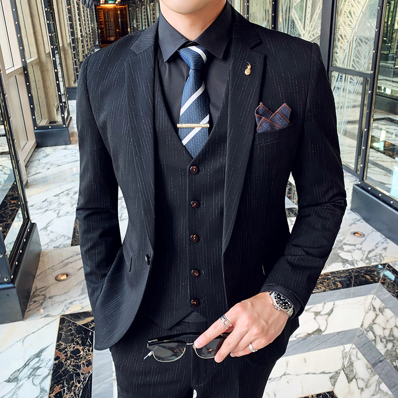 2021 summer suit suit men's three-piece youth Korean version slim groom wedding dress Casual student suit
