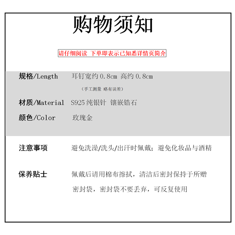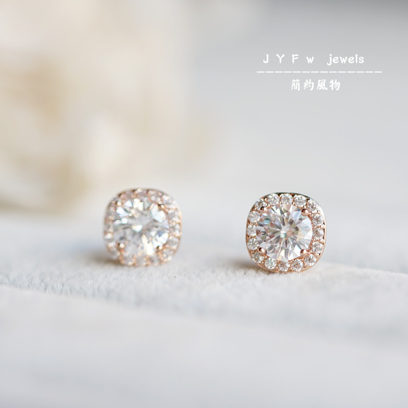 Rose gold square drilling ear pin 1 pair of silver square drill ear pin 1 pair