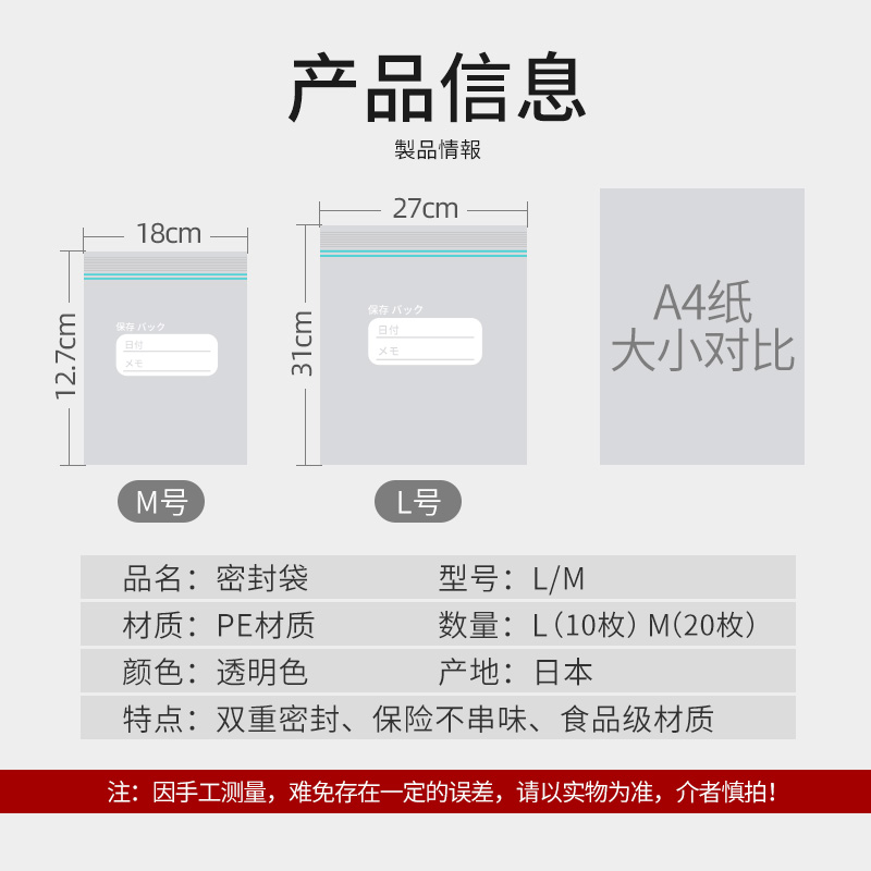 Japan PE sealed bag vacuum transparent waterproof extraction pull chain type home IKEA double gluten food bag cashier bag