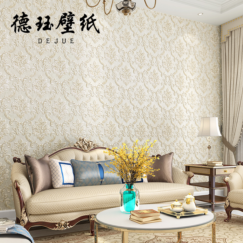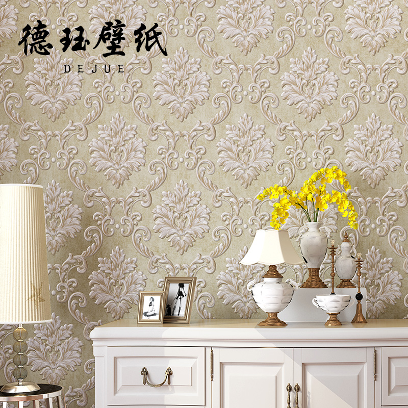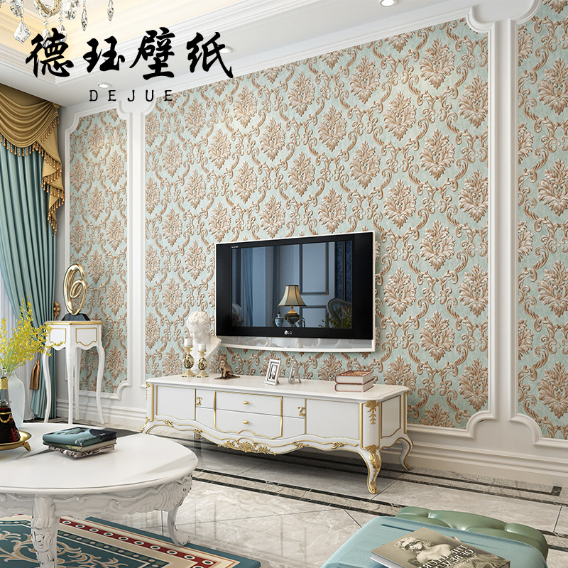 Eurostyle 3D Cubic luxury unwoven Damascus wallpaper Light extravagant living room Bedroom TV wallpaper Green