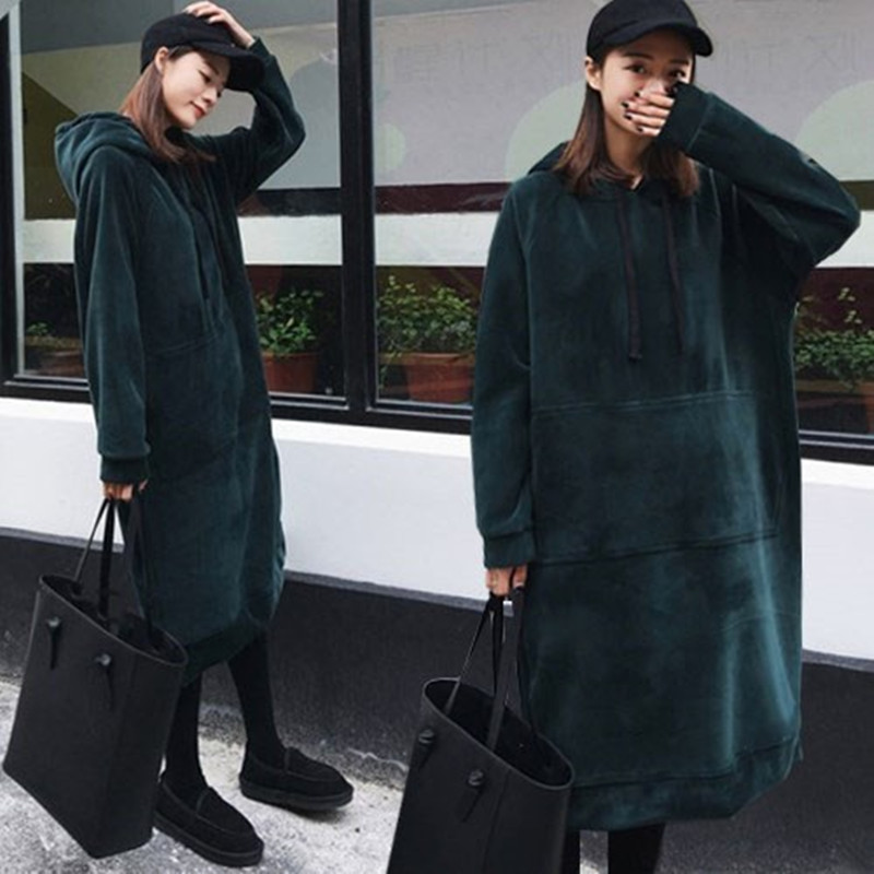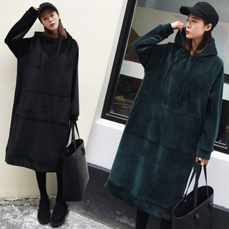 2020 fat plus size maternity clothes autumn and winter Korean version of the long version of the knee-length gold velvet sweater 200 pounds jacket