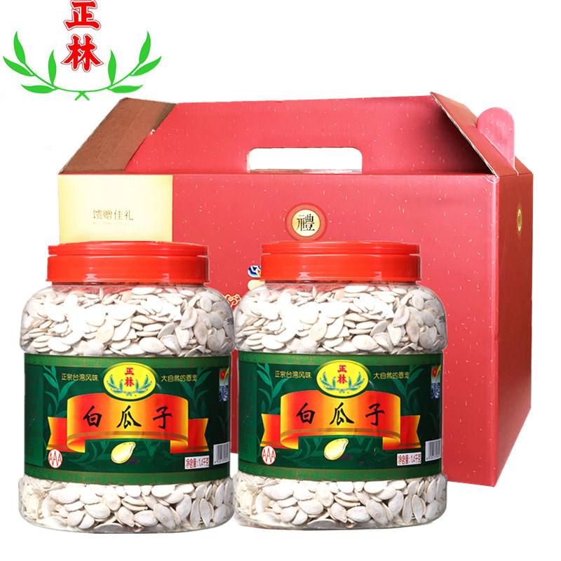 (Gift box group purchase New Year's goods) Zhenglin white melon seeds pumpkin seeds large slices snacks nuts roasted seeds and nuts 1000g*2 barrels