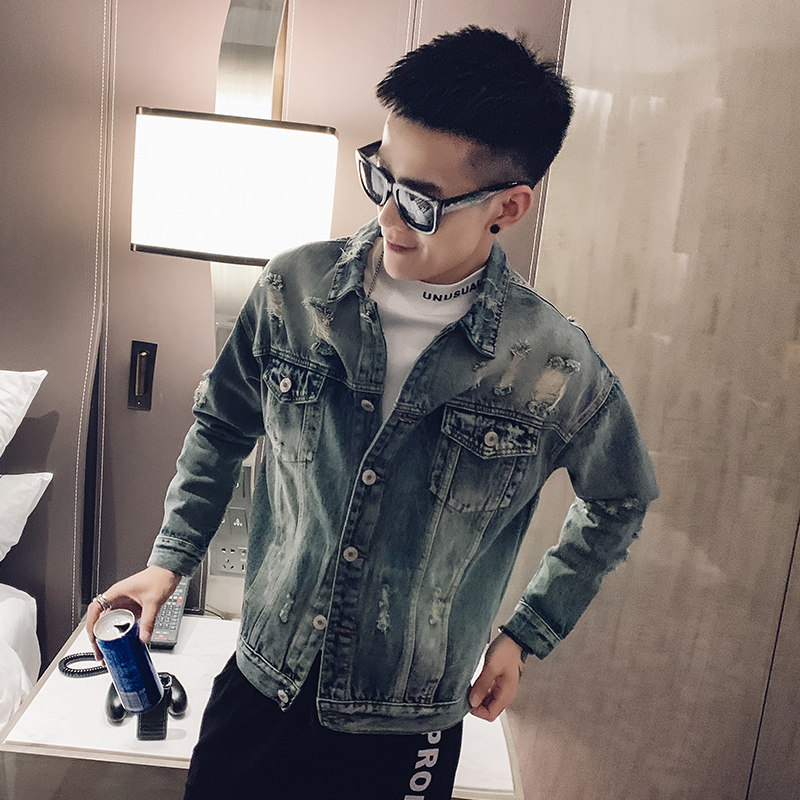 Guo Tian embroidered cowboy coat men tide on the street of Europe and America, Han Edition of the trend loose spring and autumn social breaking jacket