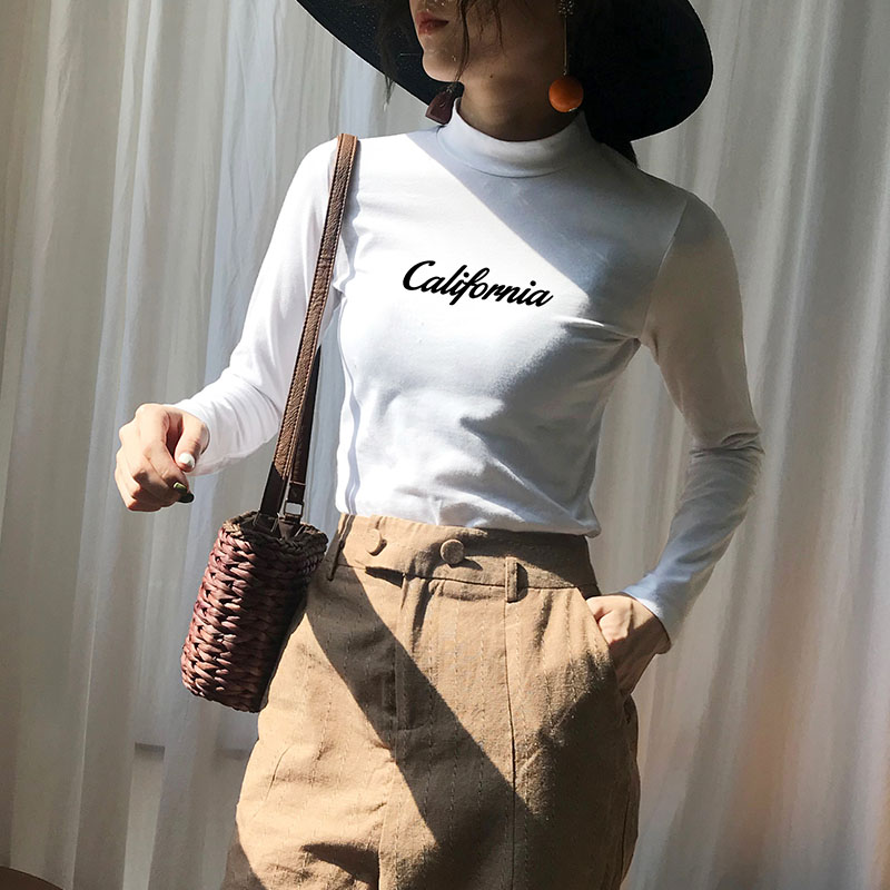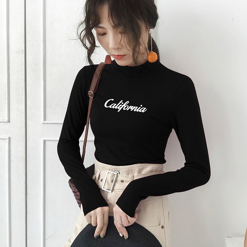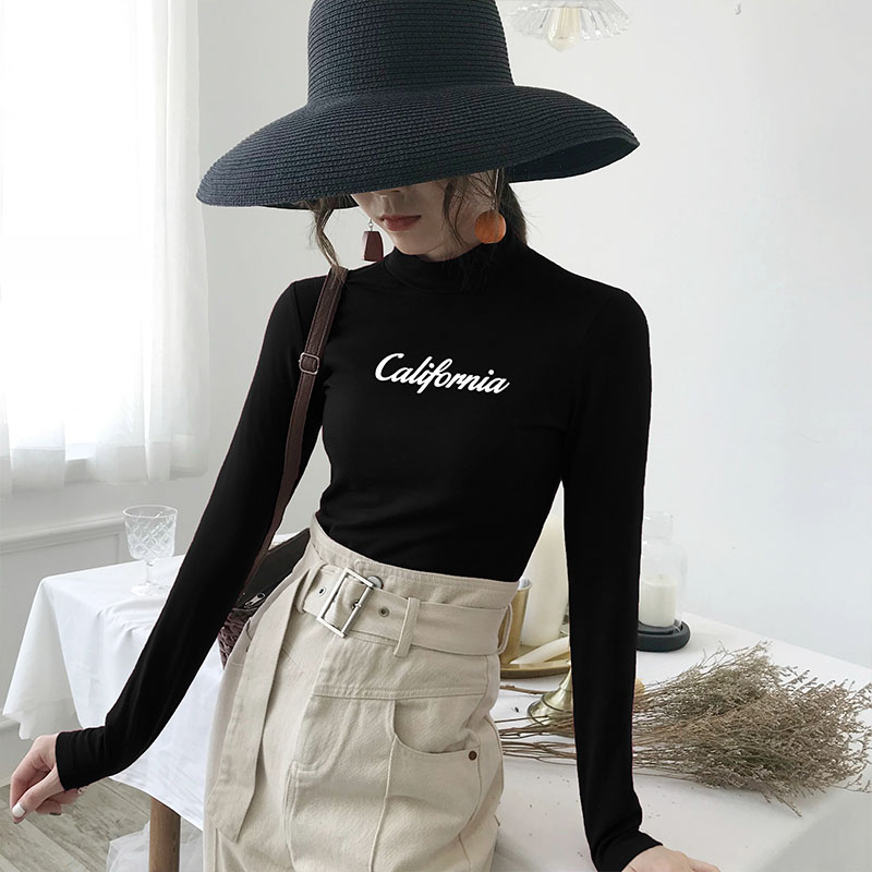 Black beating undershirt woman long sleeve half high collar tight fit T-shirt pure cotton swarm 2021 The new inner lap top of the jacket
