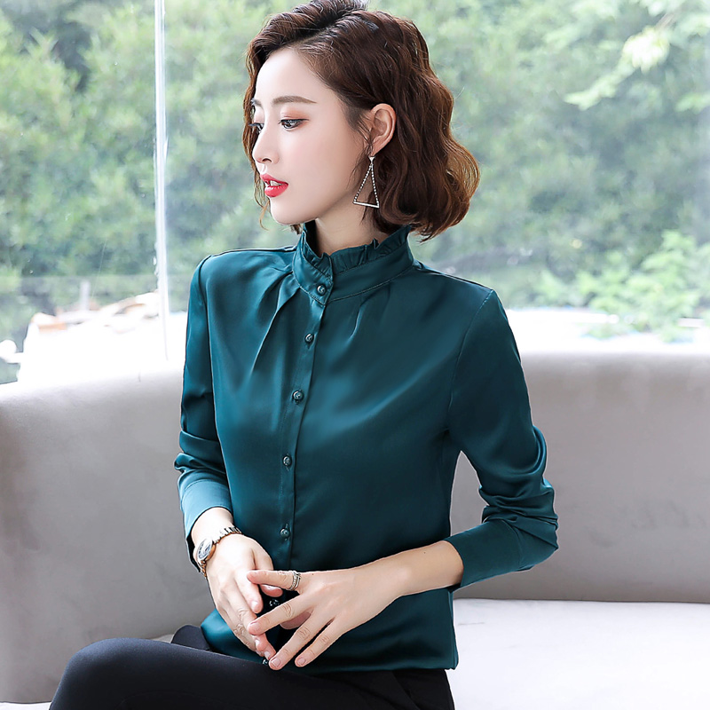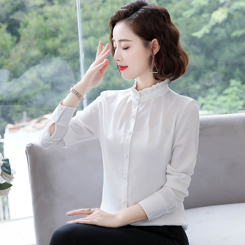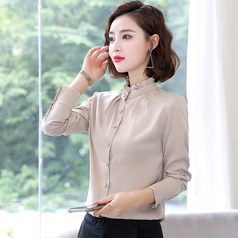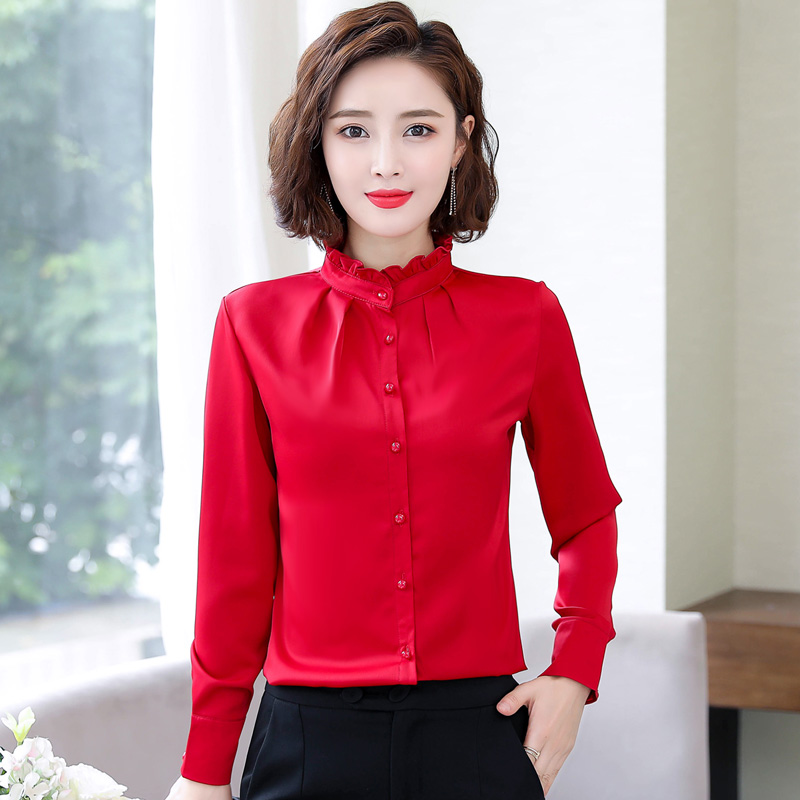 Red Chiffon shirt top 2021 autumn Korean edition velvet thickened temperament tooling professional ol all-match shirt inch
