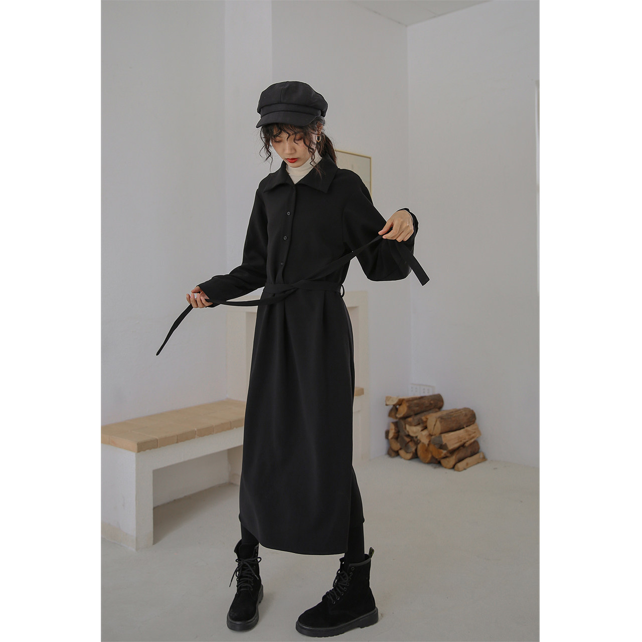 Deer Southward Herben Wind Long Sleeve Ocean Dress Women Fall Bottom Closets Waist Display Slim Fit Winter Dress Annual Meeting Little Black Dress