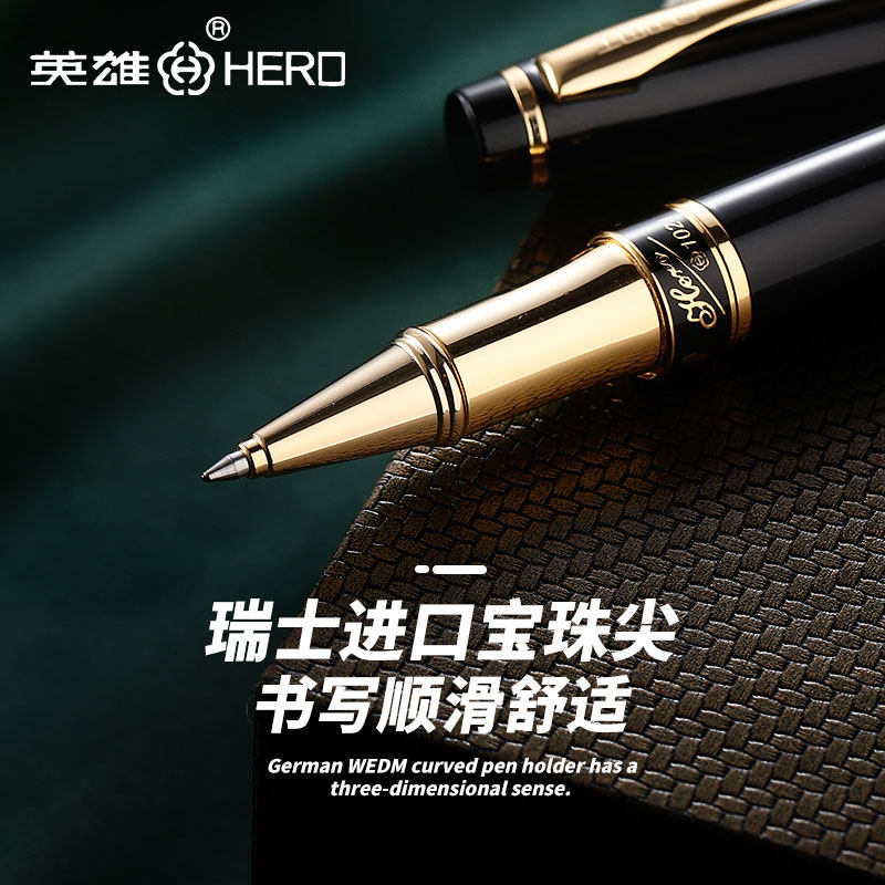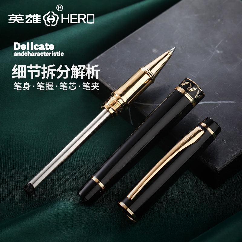 Hero 1021 signature pen metal heavy-handed high-end ball-point pen business men's black water-based pen office 0 5mm gel pen signing single billing magic pen private custom free lettering