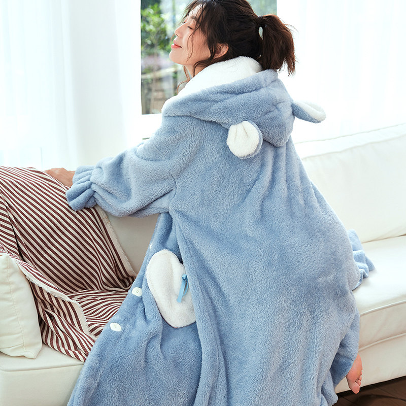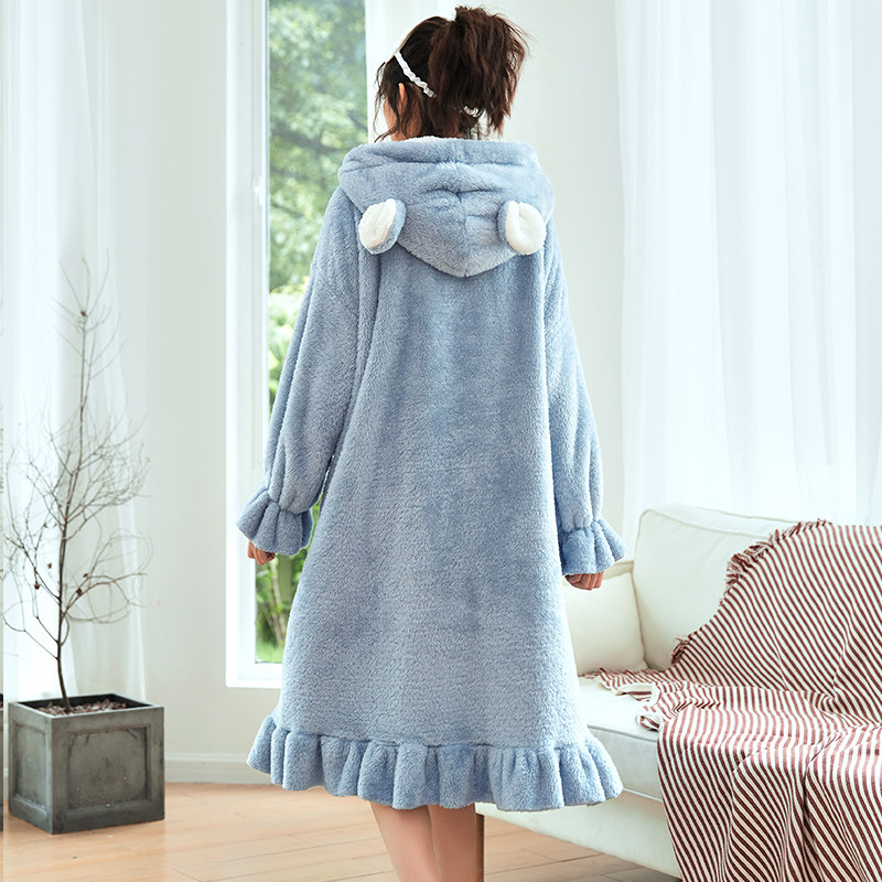 Coral fleece women's nightgown winter thickening plus velvet long winter sexy nightdress cute autumn and winter large size flannel pajamas