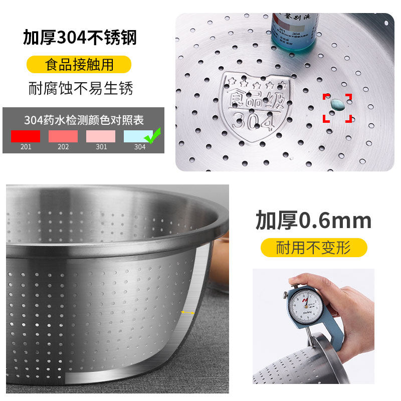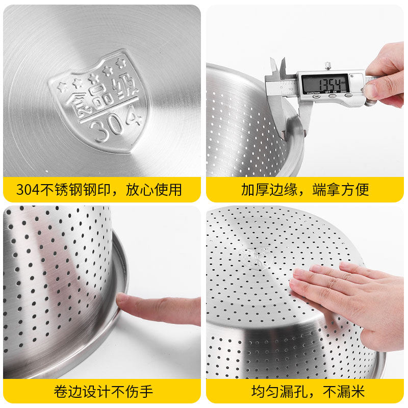 Food grade 304 stainless steel leaky basin kitchen wash basket package asphalt basket household taoming basket rice rice sieve