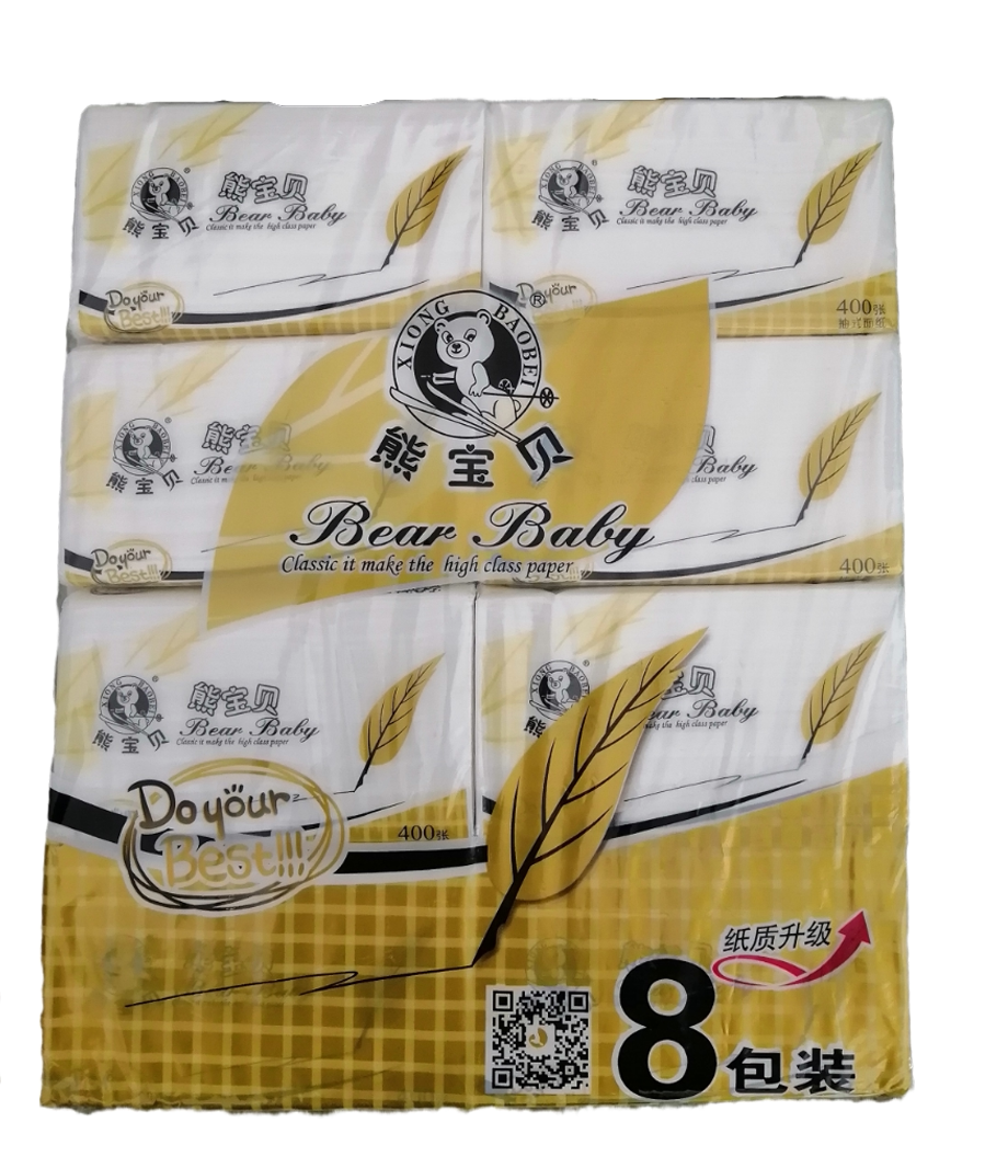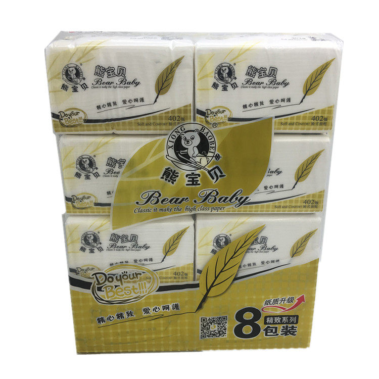 Bear baby removable tissue paper napkin wettable paper x-66 virgin pulp three layers 400 sheets 80 packs