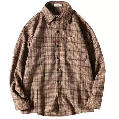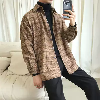 ulzzang plaid shirt men Korean trend loose fat plus size fat fat thick hairy shirt coat