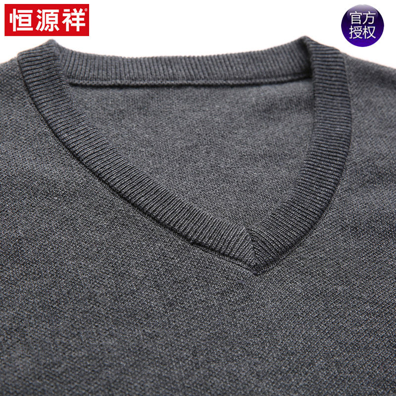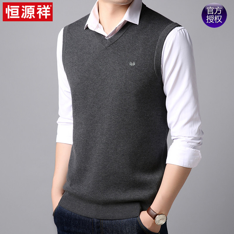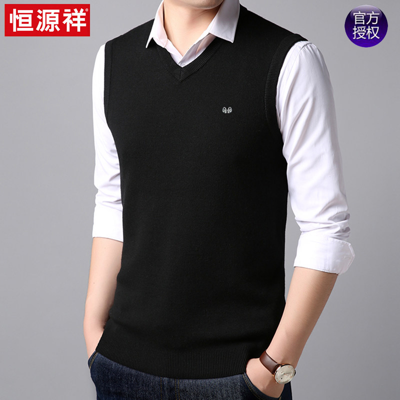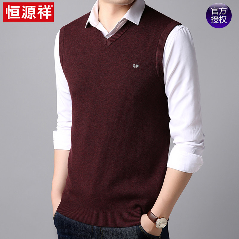 Hengyuan Xiangqiu Winter middle-aged men's V collar pure color with wool vest Waistcoat Knitwear Waistcoat Waistcoat and Dad clothes