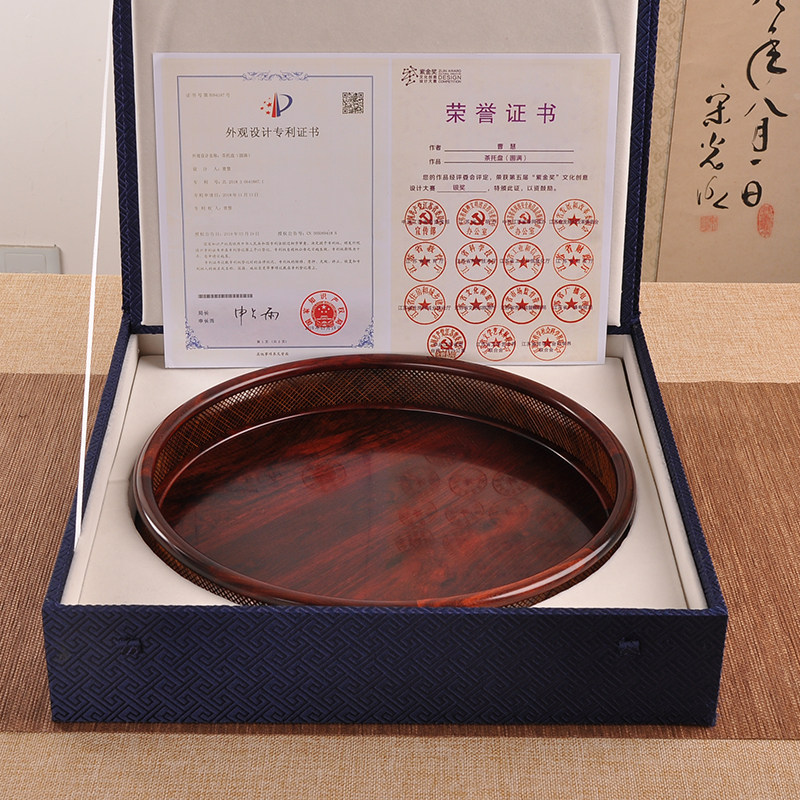Cao Huihe satisfactorily Purple Golden Moon Revenue-generating Na Red Wood Creative Text Pan Tea Sample Tray Jade Display Wooden Tray Hand Care Tray