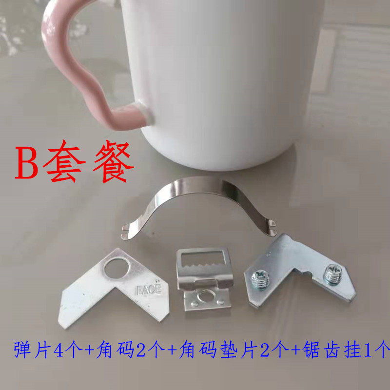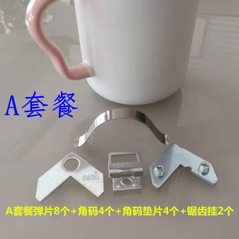 Spring sheet 8 angular code gaskets 4 sets of serrated hanging 2 B spring pieces 4 corner code gaskets 2 sets of serrated hanging 1 individual spring sheet 50 single hole angle code gaskets 50 individual serrated hanging