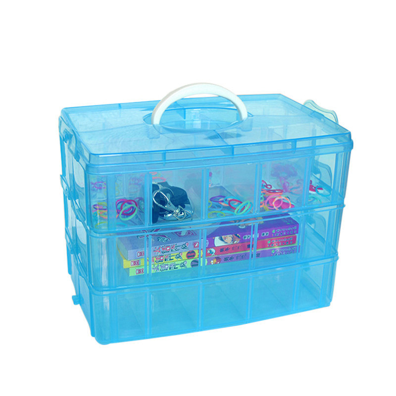 DH large three-layer detachable plastic transparent jewelry beaded storage lattice button needle and thread storage box storage box