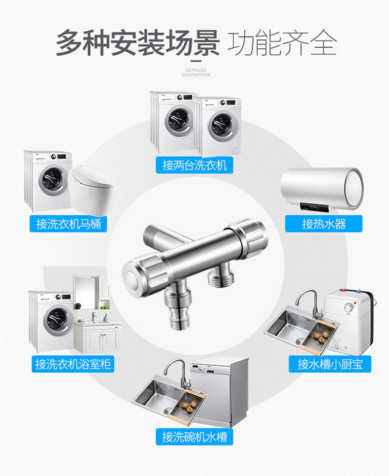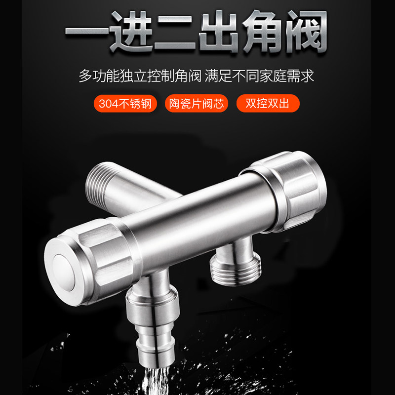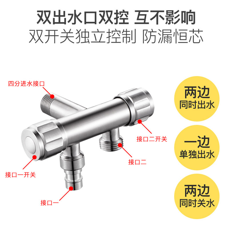 304 stainless steel washing machine faucet one in, two out, one point, two, three-way, double-headed water, dual-use connector