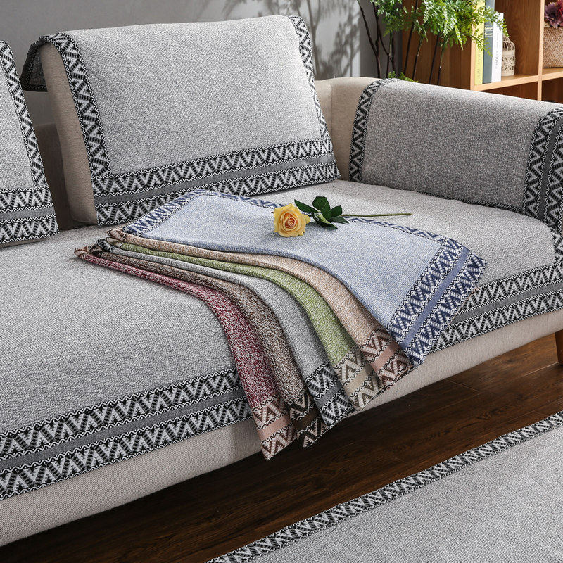 Four Seasons Sofa Cushion Linen Cotton Linen Simple Modern Universal Fashion Solid Wood Three Seat With Backrest Towel Cover Customization