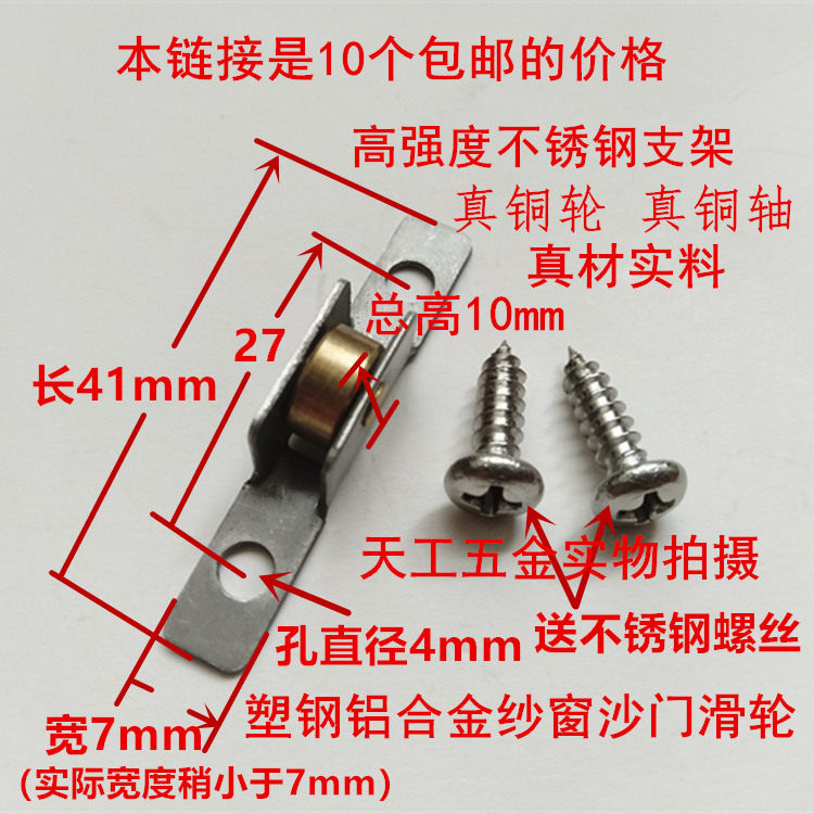 10pcs 7mm wide stainless steel bracket true copper wheel Plastic steel aluminum alloy push-pull screen window screen door pulley