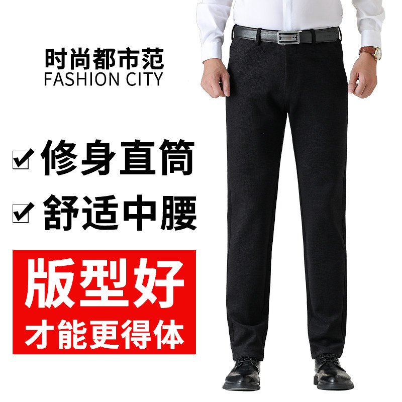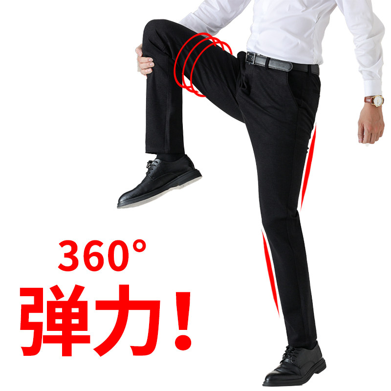 Autumn and winter new men's business casual pants trend black wool men's pants in the youth slim stretch straight pants