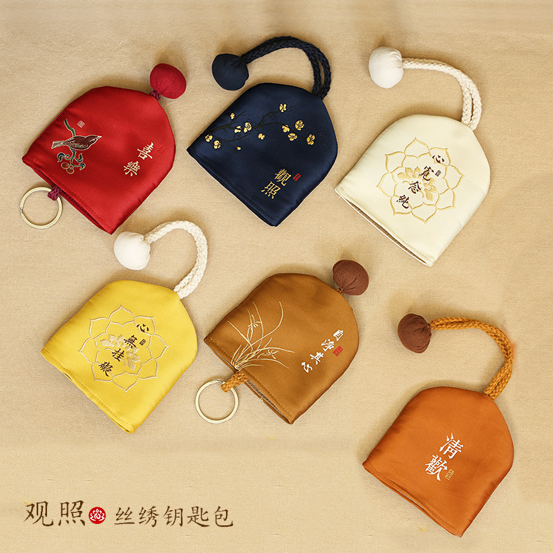 Zen Key Case Creative Cultural Gifts Handmade Silk Embroidered Storage Package Birds Singing Flowers Fragrance Picture Portable Blessing Pendant
