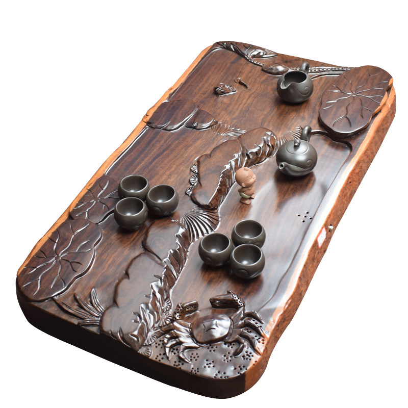 The whole black sandalwood tea plate multi - level sculpture of eight - sided vibrant household log tea - table tea set