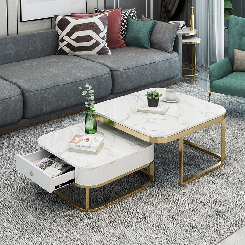 Net red small coffee table small apartment ultra-narrow marble round coffee table flower table bay window small coffee table gold creative multi-function