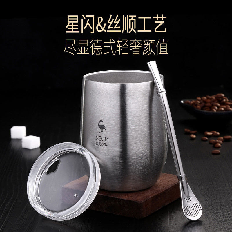 Stainless steel mouth cup Handy cup 304 water cup Steel cup with lid dropproof Single layer Student children's cup Coffee cup glass