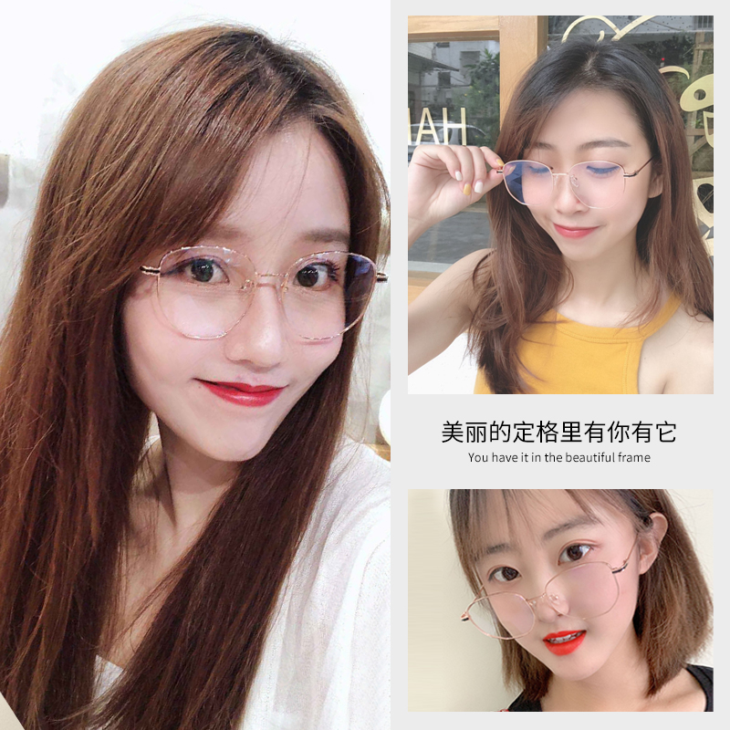 Myopia Glasses Female Retro Tide Metal Anti-Blue Light Can Fit Degree Color discoloration large frame for small vegetarian Yen Danyang frames male