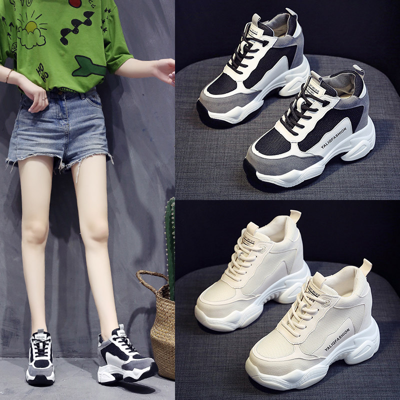 2022 autumn new 10cm height increase women's shoes thick-soled high-heeled dad shoes women's all-match muffin casual sneakers