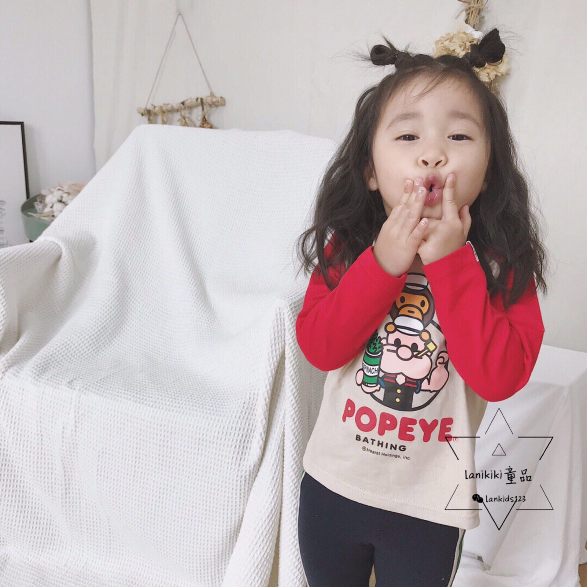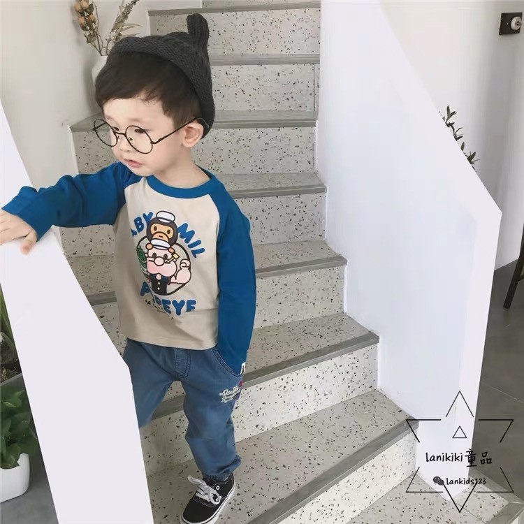 LANIKIKI spring and autumn new men and women baby cartoon monkey printing sailor long-sleeved cotton T spot