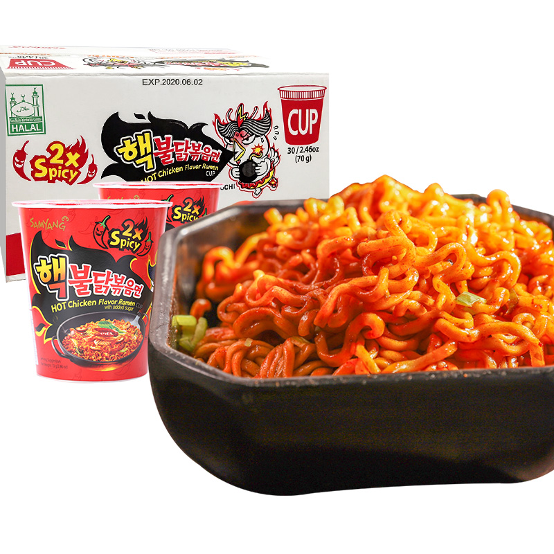 South Korea Imports of three raised turkey noodles Noodles Bucket Loaded 70g cup noodles Double spicy Super Hot Dry mix Noodle Wholesale Whole box