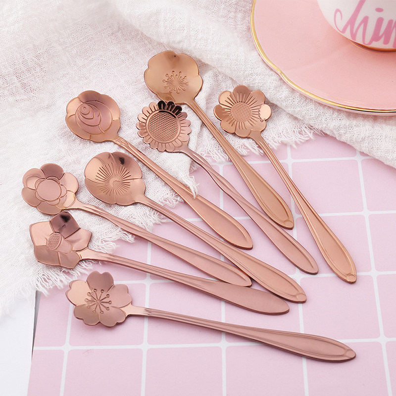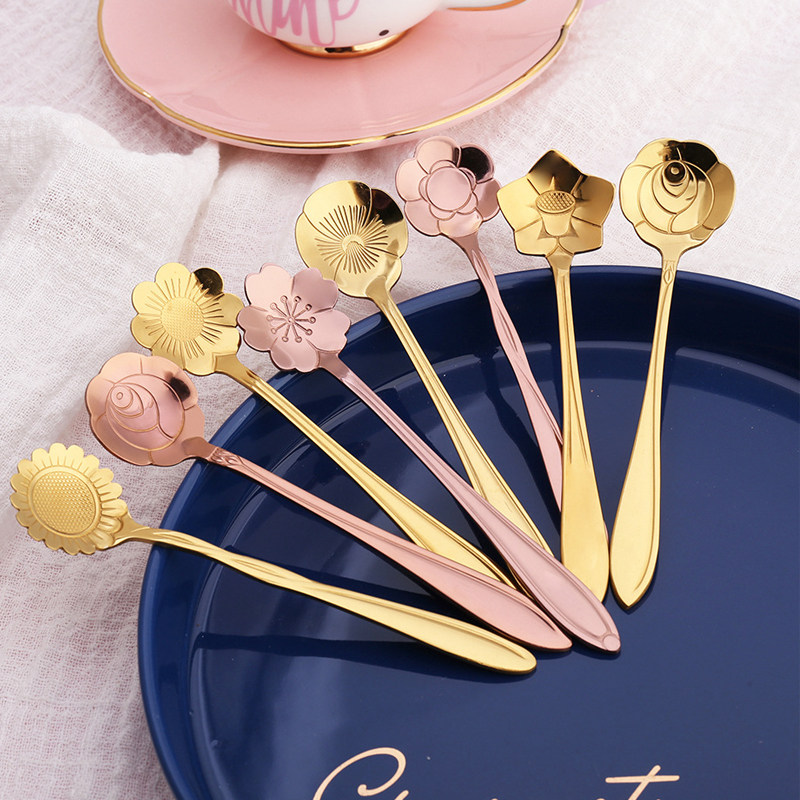 Golden Cherry Blossom Spoon Golden Cosmos Spoon Golden Rose Spoon Golden Sunflower Spoon Golden Sunflower Spoon Golden Plum Spoon Golden Long Handle Ice Spoon Golden Dessert Round Spoon Leaves Spoon Leaves Two Fork Leaves Three Fork Leaves