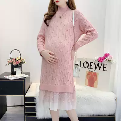 Pregnant women sweater dress winter foreign pie in the long version of lace stitching loose base shirt autumn and winter wear set