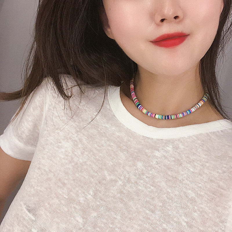 Colorful soft leather pottery necklace woman 2022 European and American INS tide rainbow candy color stringing collarbone chain chocker
